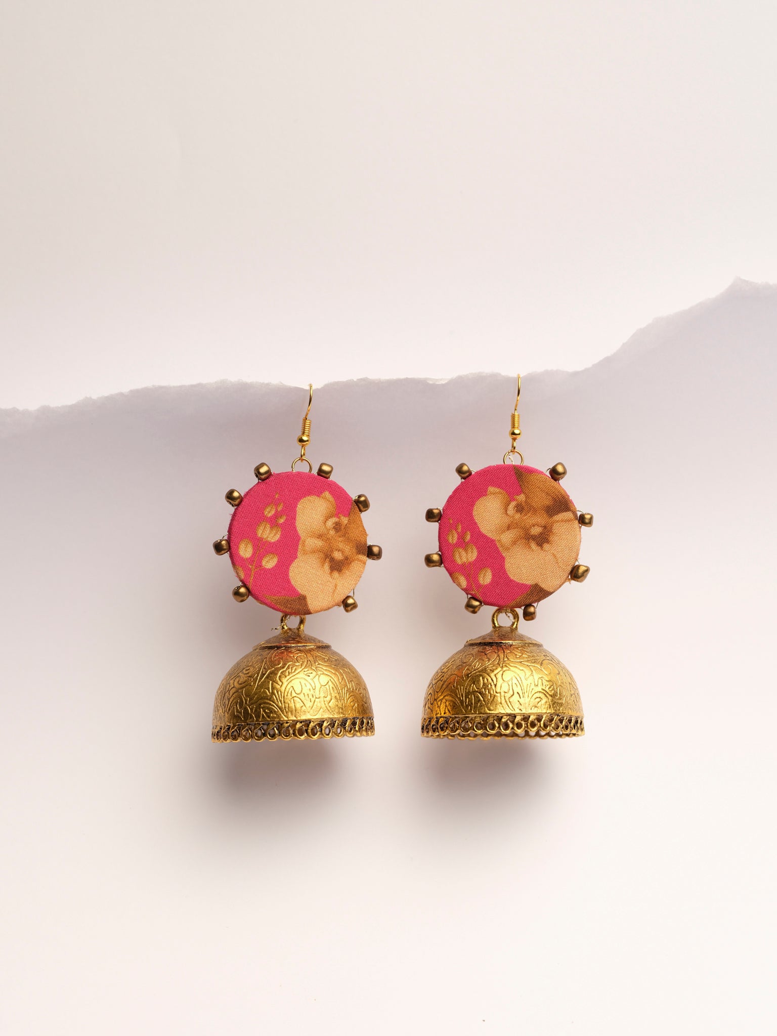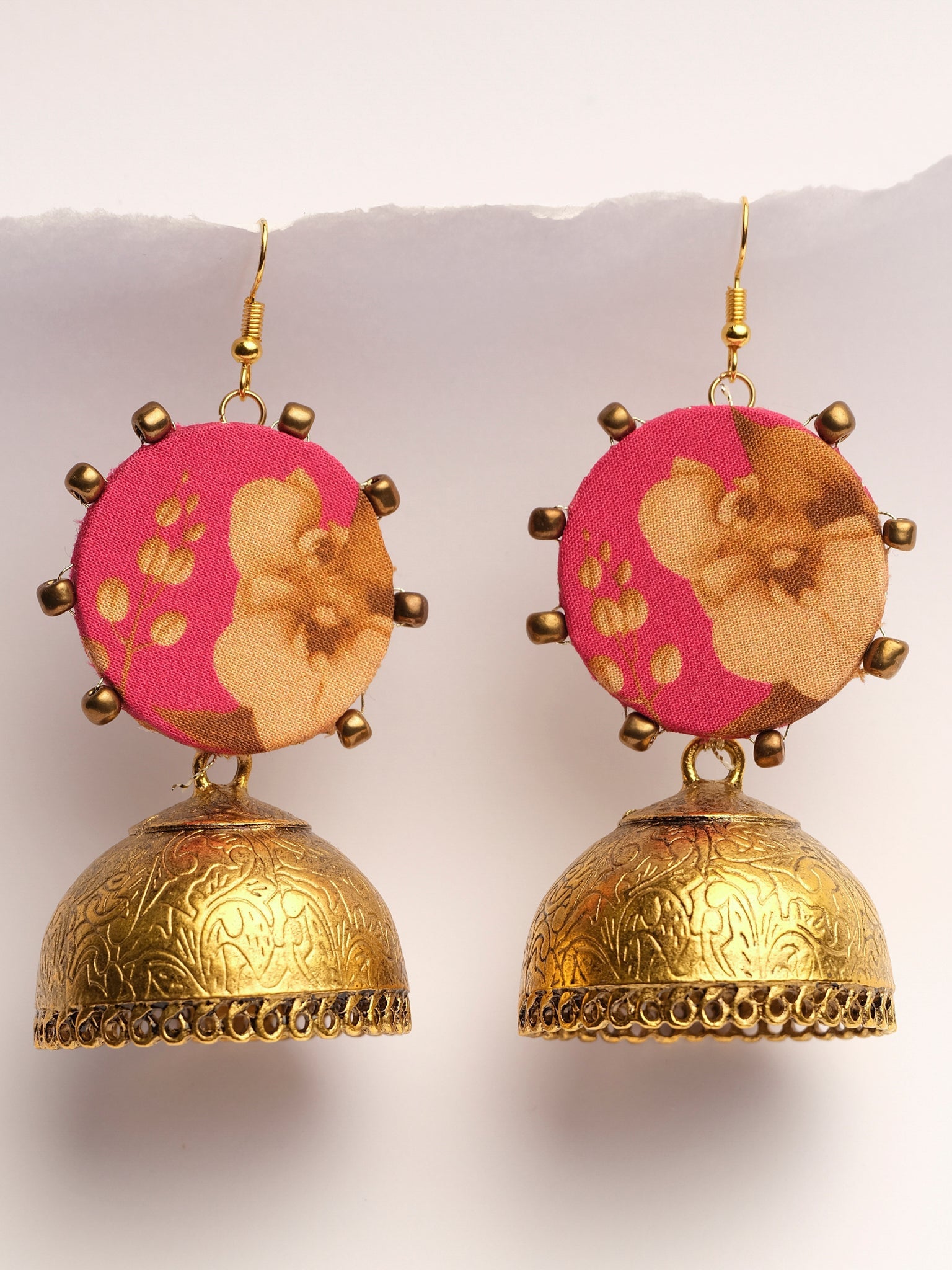 stylize ur outfit with shocking pink with bead work on the sides and copper antique jhumka.